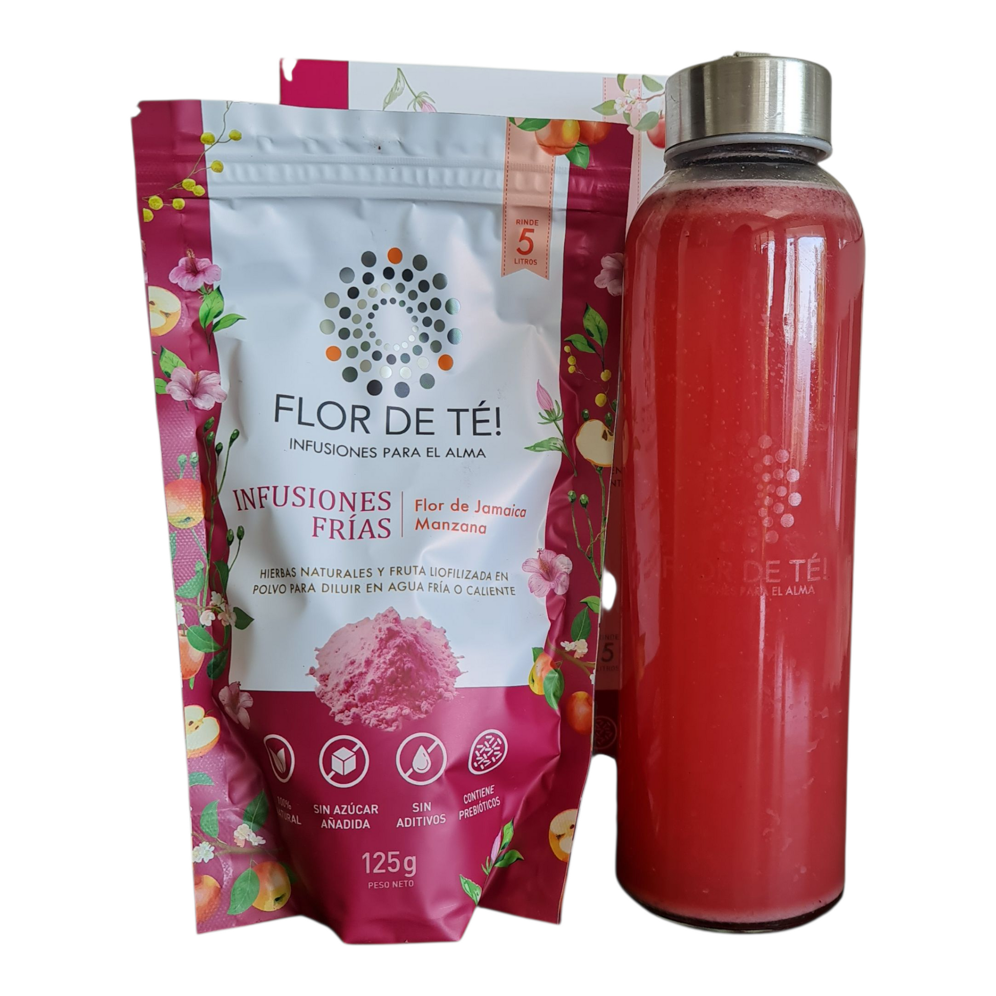 Botella de Vidrio + Infusión Fría Rosa Jamaica | Flor de Té